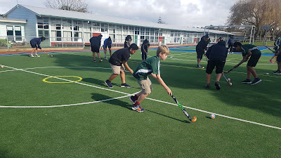 I really enjoy dribbling the hockey ball and most of the times I try long range. My teacher always tells me that he likes how I keep my stick low when I shoot. I think it's important to do that because someone could get hurt if we swing the stick in the air.